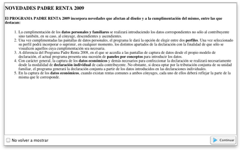 Renta 2009 (Modelo PADRE) viene con un aspecto renovado, si bien sigue manteniendo el estilo sencillo y simple y una completa ayuda para no perderte en ningún paso. Además, este año está disponible para Mac OS X.